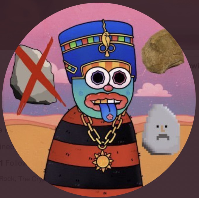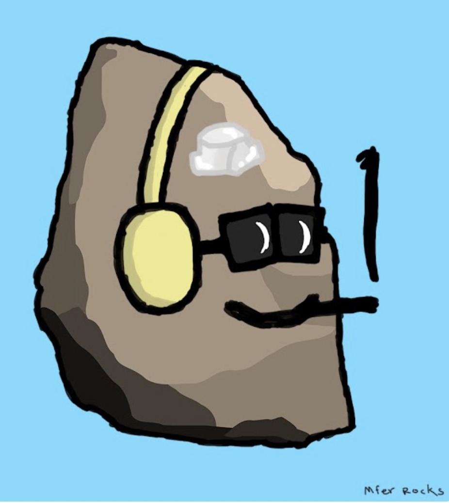 In better days for DinoDealer, other crypto rock enthusiasts have come to his aid, one user sending the geologist salesman a picture of the rock with glasses and headphones, signed “mfer rocks.”