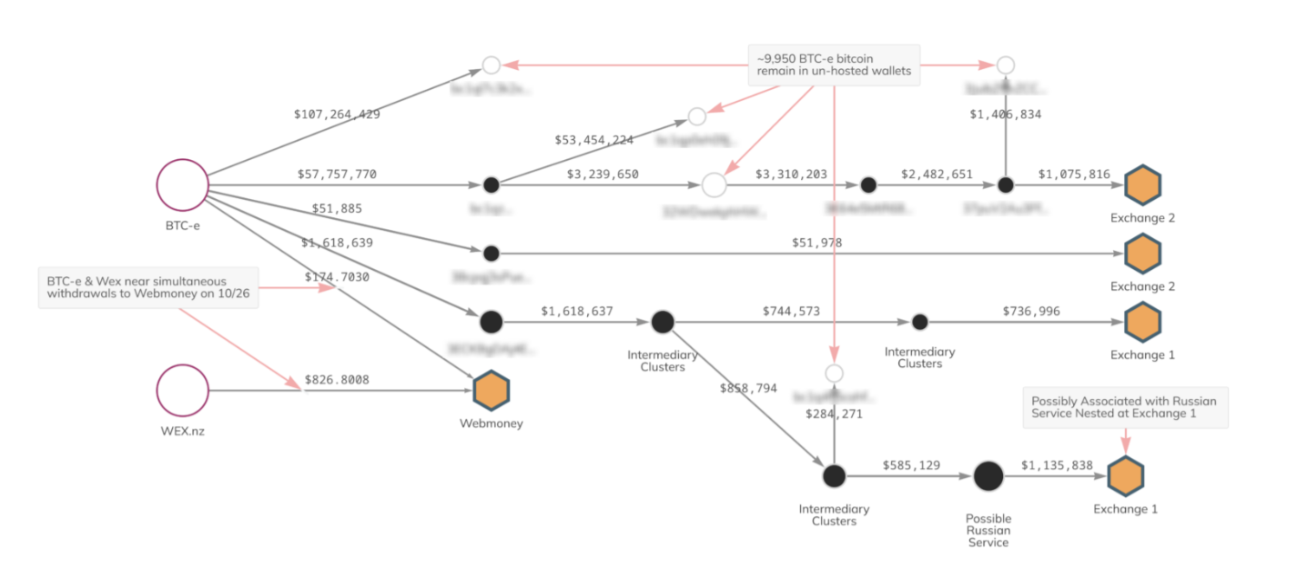 According to Chainalysis, at the time of its shutdown BTC-e still held “a substantial amount of Bitcoin,” and in April 2018 moved over 30,000 BTC out of its service wallet.