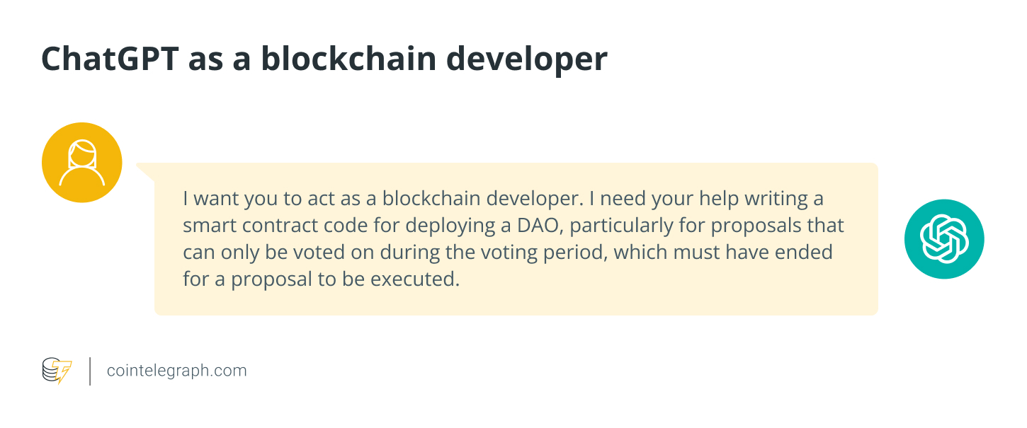 An AI-powered explanation of blockchain can help developers reinforce their understanding, streamline problem-solving and accelerate the development process. Additionally, ChatGPT can assist with troubleshooting code, suggesting optimal solutions and exploring new blockchain use cases.