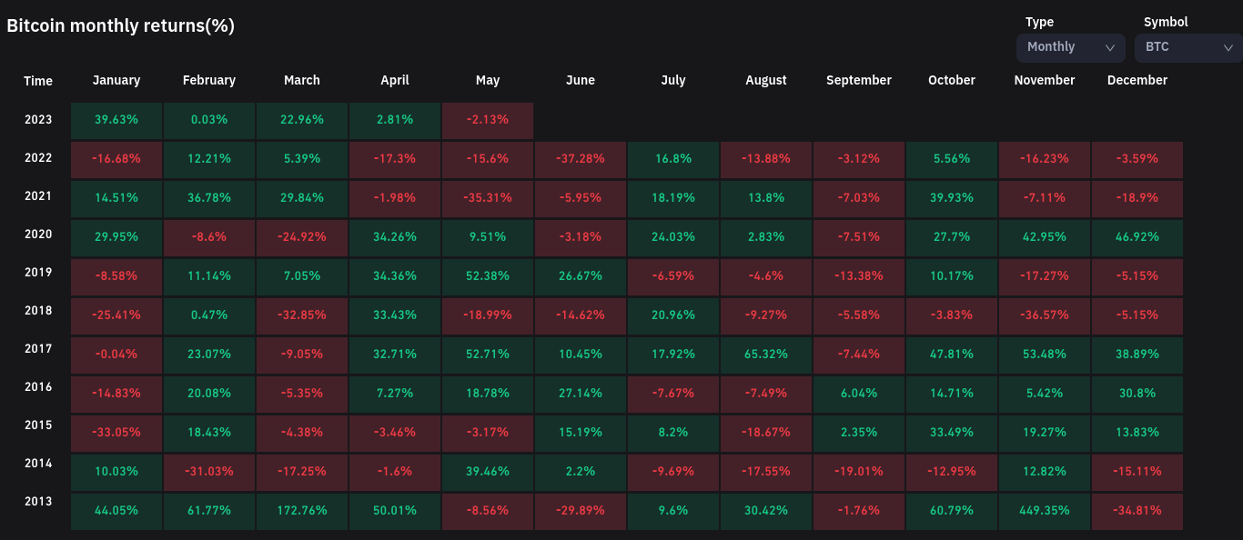 Despite current cold feet over BTC price strength, April managed to avoid receiving the title of worst month of 2023.