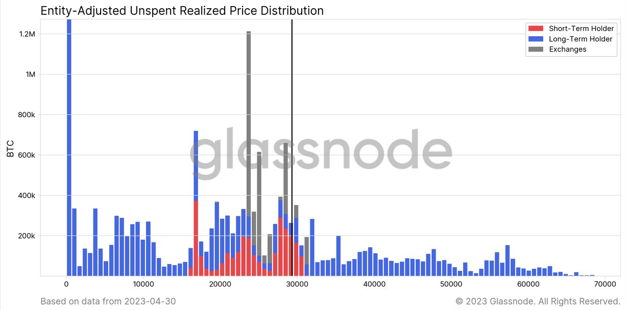 An accompanying chart showed unspent realized price distributed of various market cohorts.