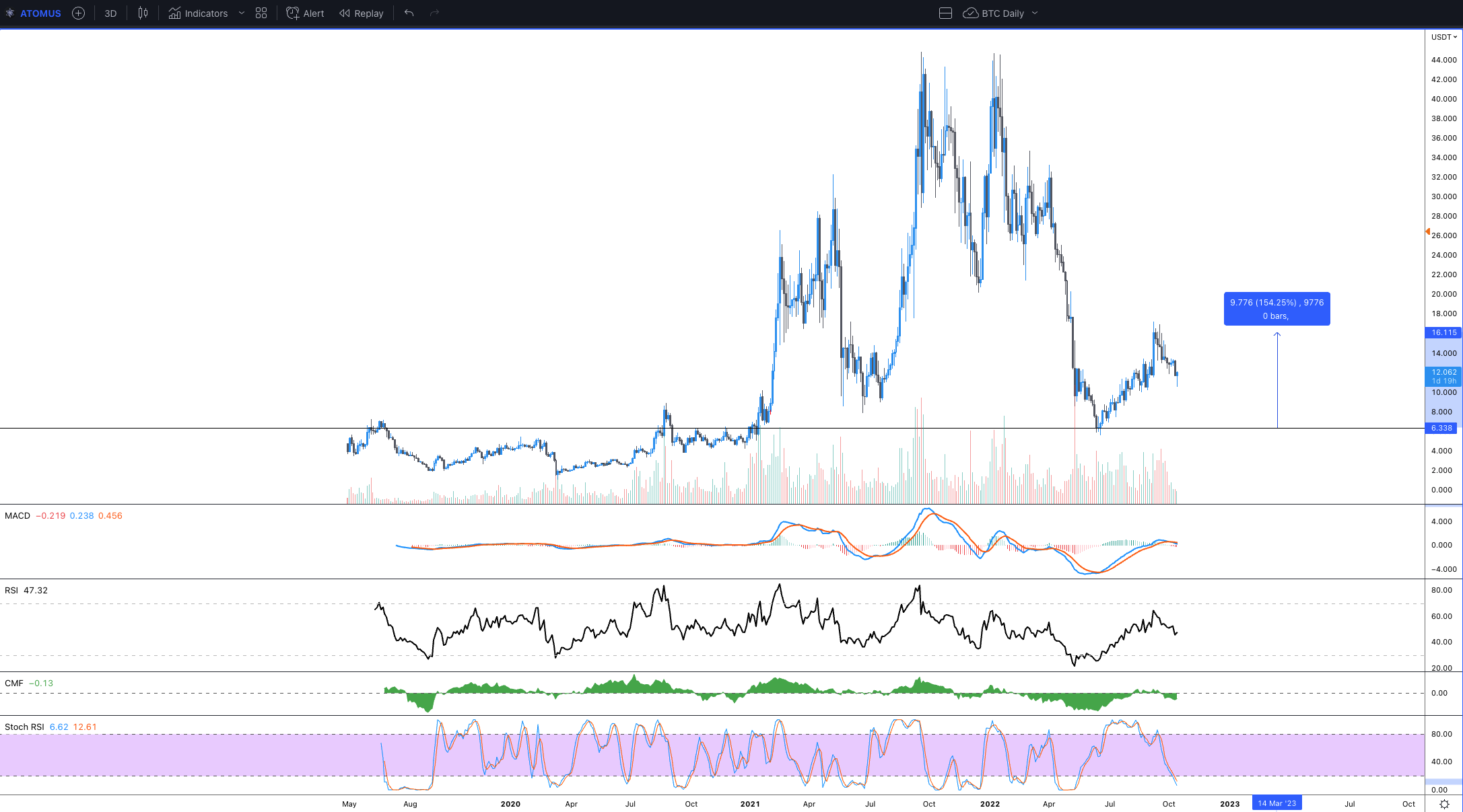 Aside from ETH being an asymmetrical performer in the last four months, Cosmos (ATOM) also defied the market downtrend by posting a monster rally from $5.40 to $16.85. As covered thoroughly by Cointelegraph, oversold conditions, along with the hype of Cosmos 2.0, backed the bullish price action seen in the altcoin, but this chart continues to capture my imagination.