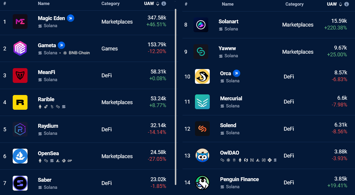 Oct. 19 data from DappRadar shows that the number of Solana network addresses interacting with decentralized applications declined in 13 of the top 20 DApps. The reduced interest was also reflected in SOL’s futures markets.