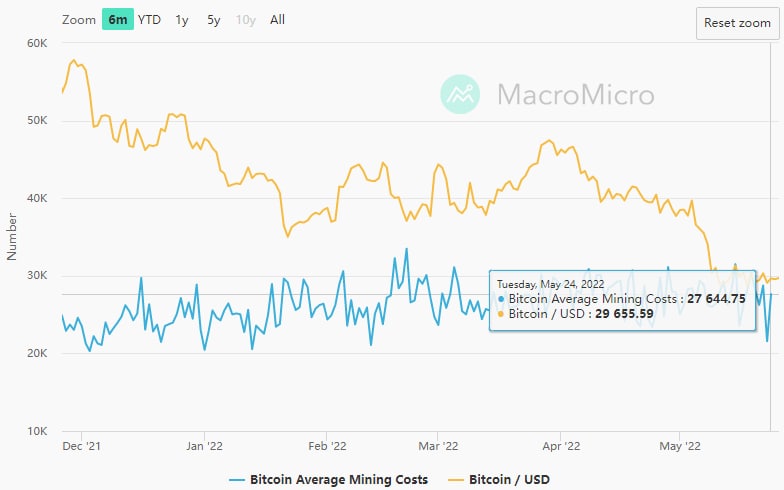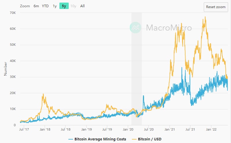 Another metric that can provide insight into when and where to buy is Bitcoin’s average mining cost, which is the amount of money it costs a miner to mine 1 BTC.