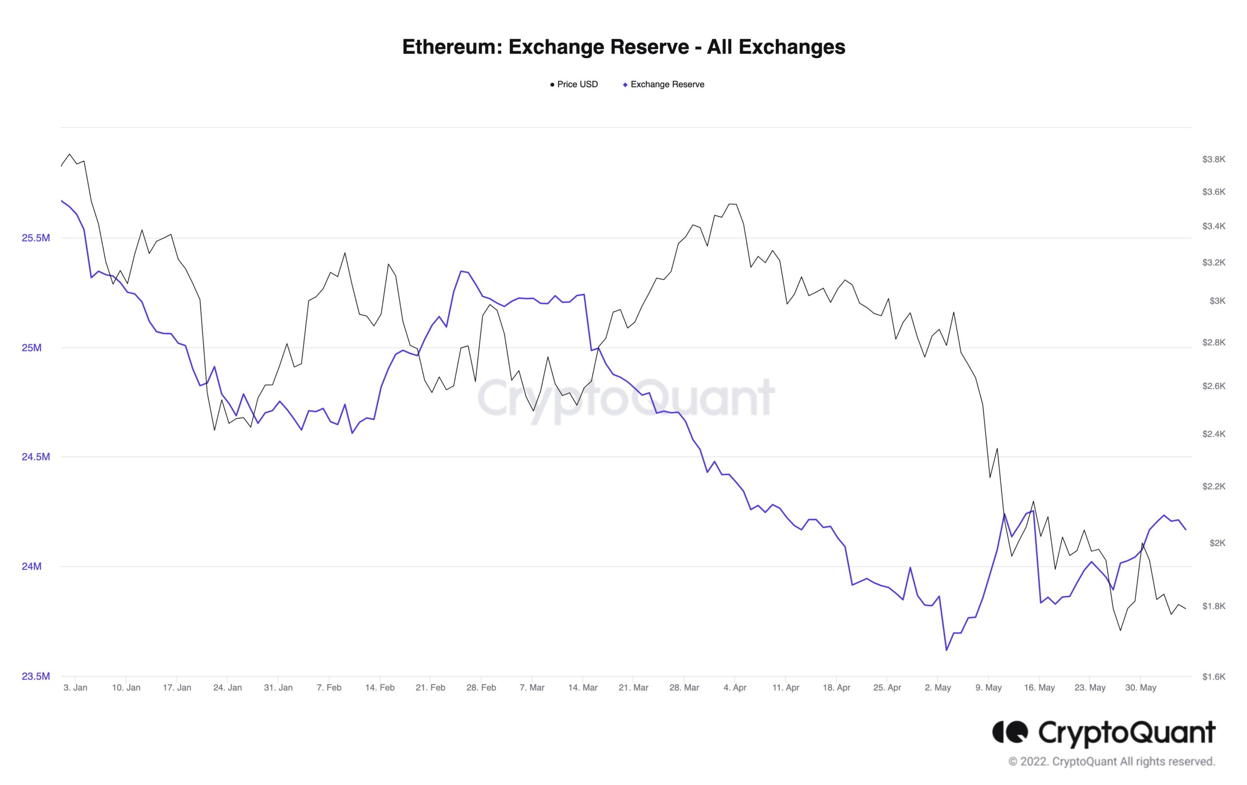 ETH reserves on exchanges are increasing