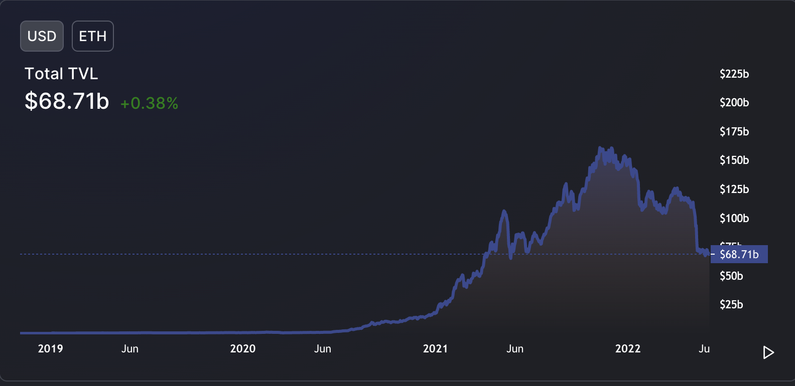 But the TVL still reflects a massive retreat from Ethereum’s DeFi pools, which, before LUNA and UST’s collapse on May 9 was hovering around $100 billion.
