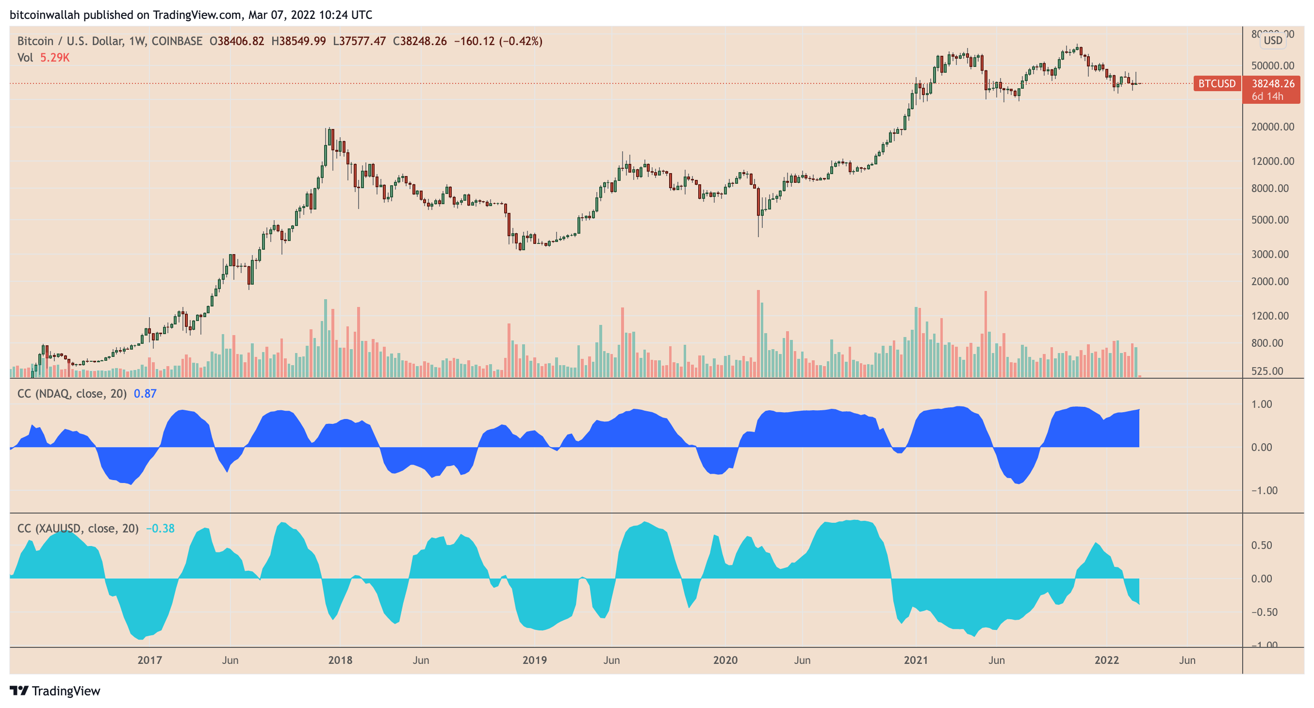 Conversely, Bitcoin’s correlation with its top rival gold came to be minus 0.38, underscoring they have been largely moving in opposite to one another during the ongoing market turmoil.