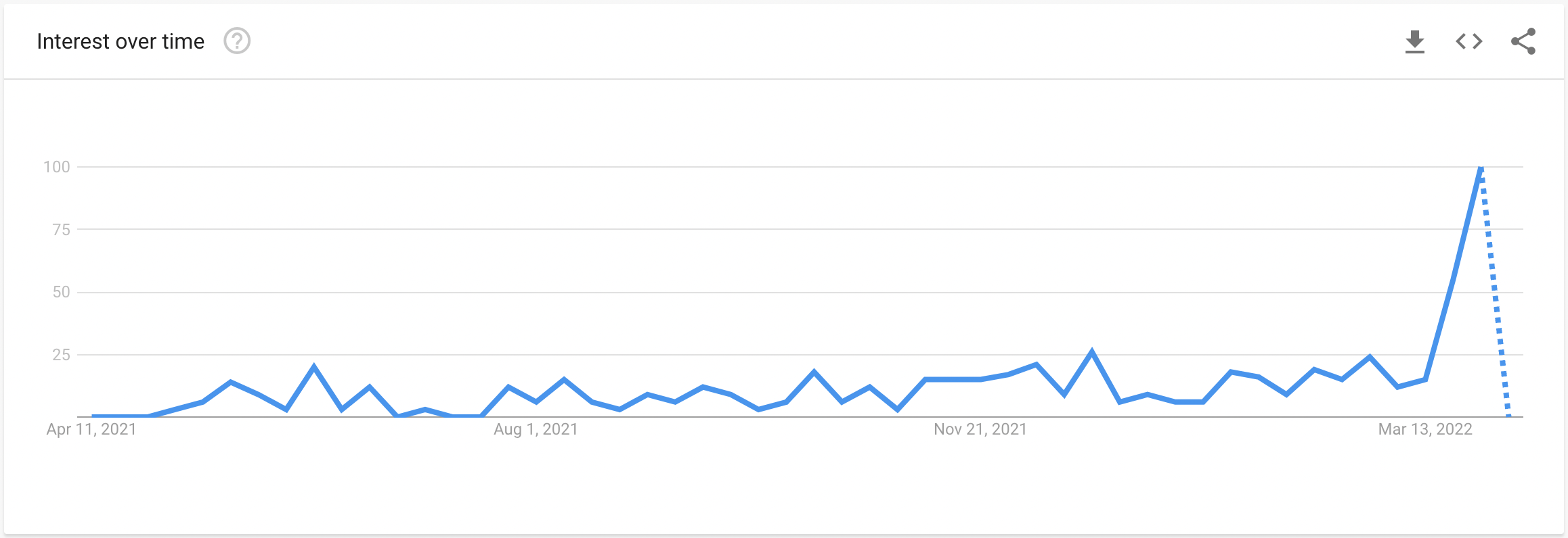 Internet users’ interest in Ethereum’s upcoming network upgrade, dubbed “the Merge,” surged substantially in the week ending April 2, Google Trends’ data shows.