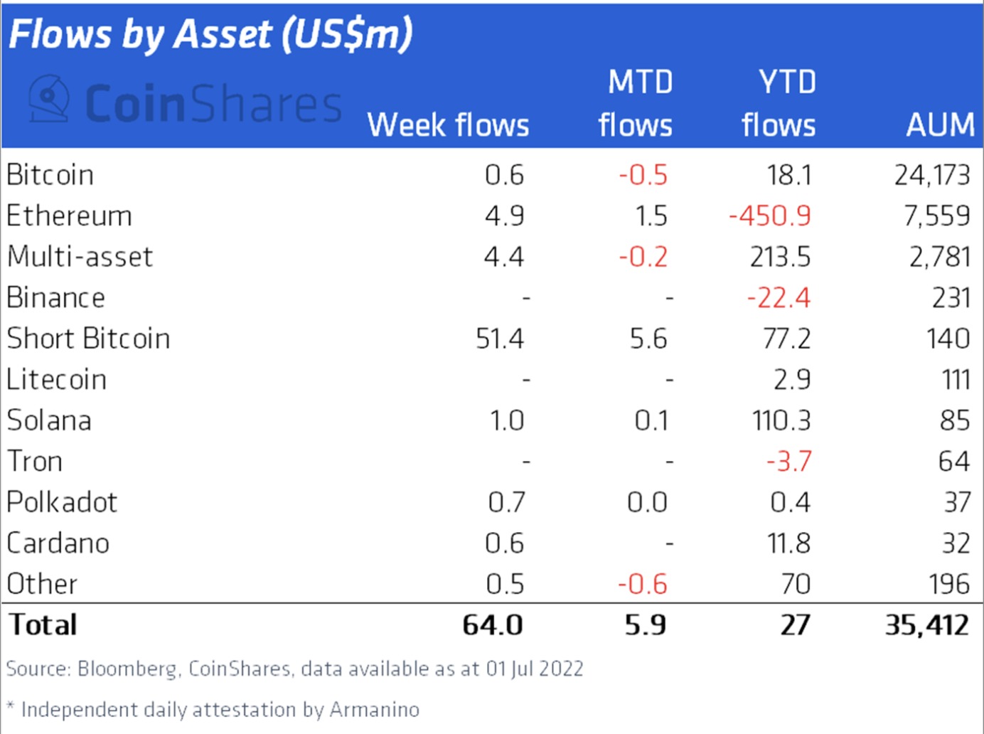 Solana-based investment funds have attracted over $110 million in inflows in 2022 as of July 1, compared to $450.9 million that exited Ethereum funds, according to a recent weekly report by CoinShares.