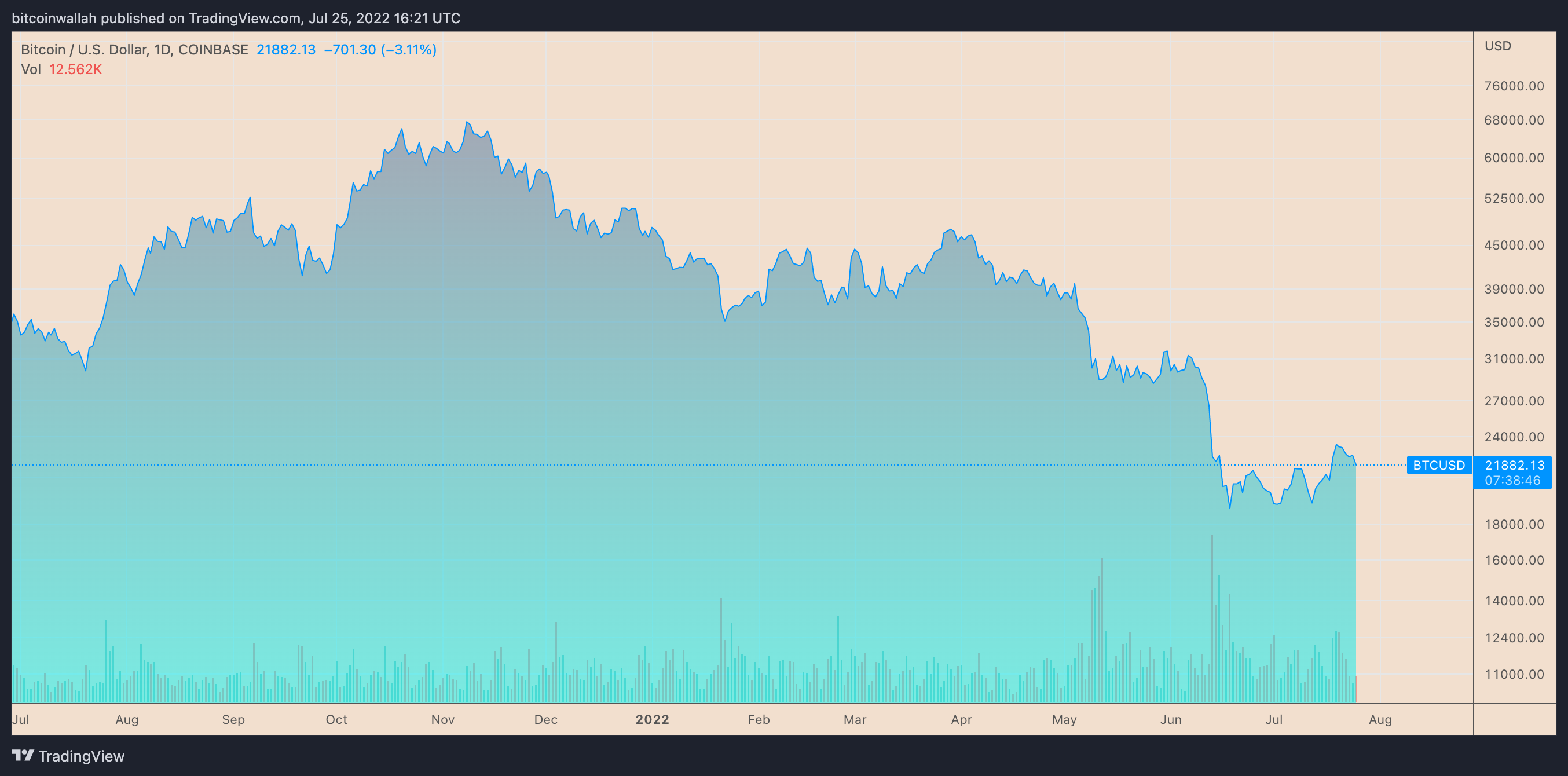 BTC’s price has rallied roughly 25% after dropping to around $17,500 on June 18. The upside retrace came after a 75% correction when measured from its November 2021 high of $69,000.