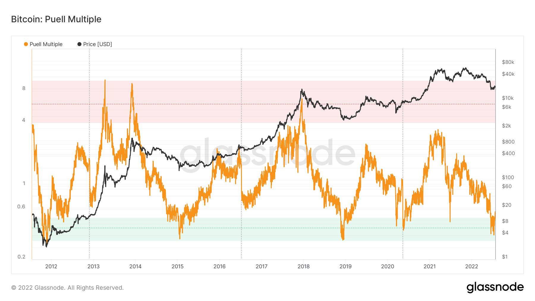 The third sign of Bitcoin forming a macro bottom comes from another on-chain indicator called the Puell Multiple.