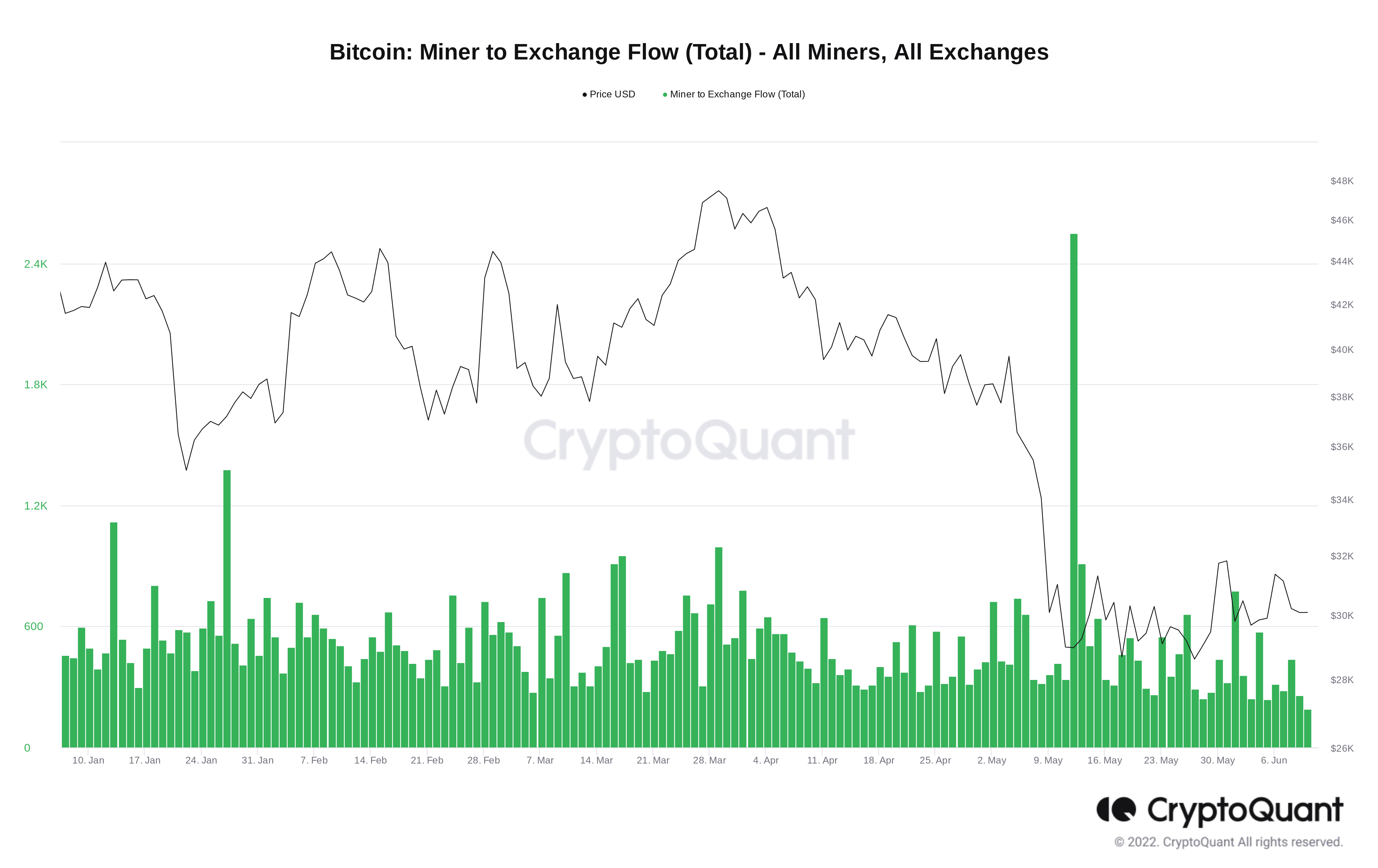“Our data shows increasing bitcoin flows from miners to exchanges during March 2022 and then a sharp spike in flows during the first week of May. This is in line with bitcoin selling reported by some mining companies in Q1 2022,” Moreno added.