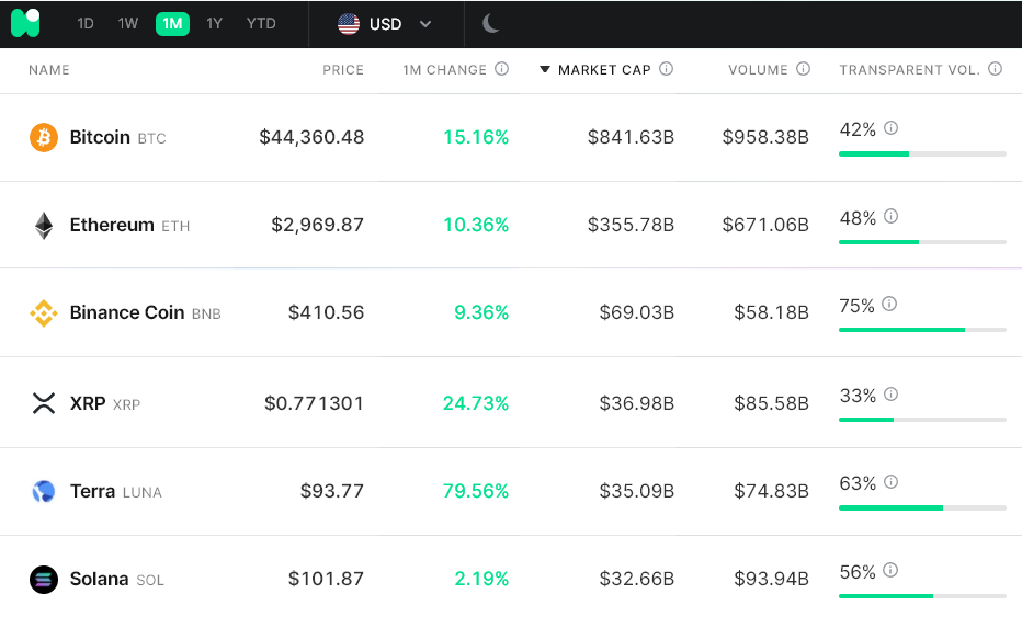 Cryptocurrencies are known for inflated exchange-traded numbers, but some providers, including Nomics, have their own adjusted volume calculations.