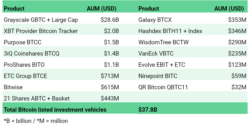 Bitcoin’s multiple exchange-traded products such as Grayscale GBTC and exchange-traded notes have grown considerably. As a result, there are $37.8 billion in assets under management locked in Bitcoin exchange-traded products. That is equivalent to 4.5% of the cryptocurrency market’s current $840 million market capitalization.
