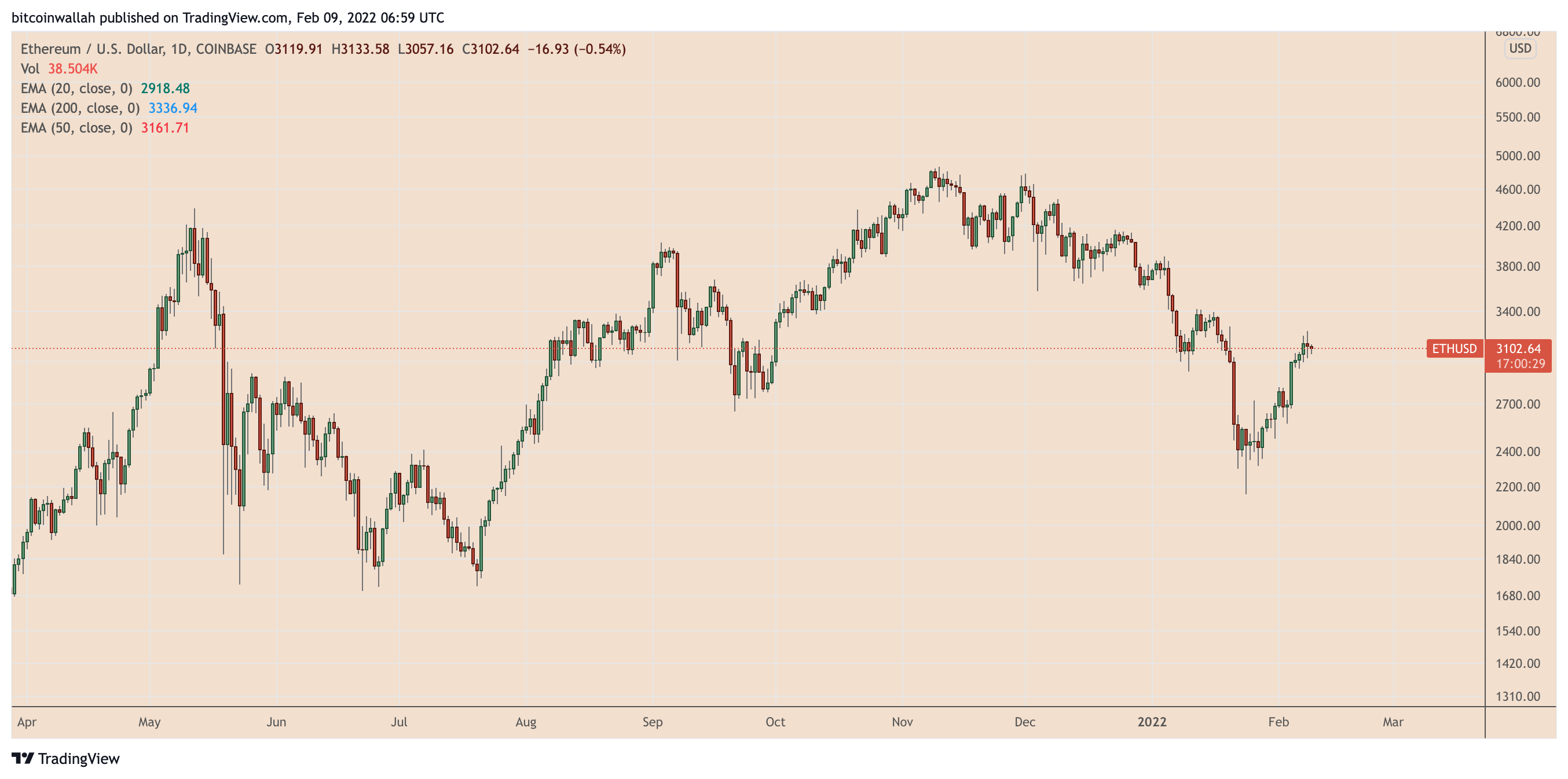 https://images.cointelegraph.com/images/840_aHR0cHM6Ly9zMy5jb2ludGVsZWdyYXBoLmNvbS91cGxvYWRzLzIwMjItMDIvMjk3ZmYyNWQtZTZkYi00NmI5LWJhY2ItOTdlMzViYTVhNzFhLmpwZw==.jpgThe price of Ether (ETH) has pulled back to retest $3,000 support levels on Feb. 9 after Ethereum’s native token reached a three-week high.