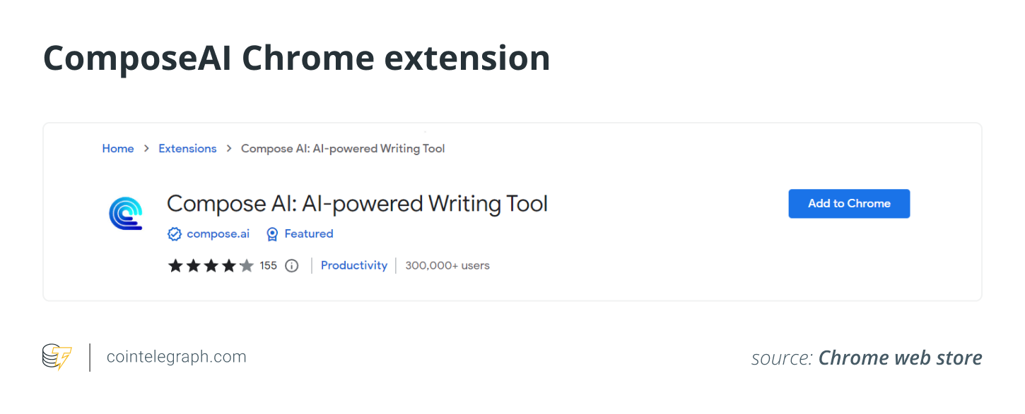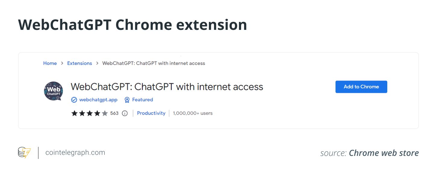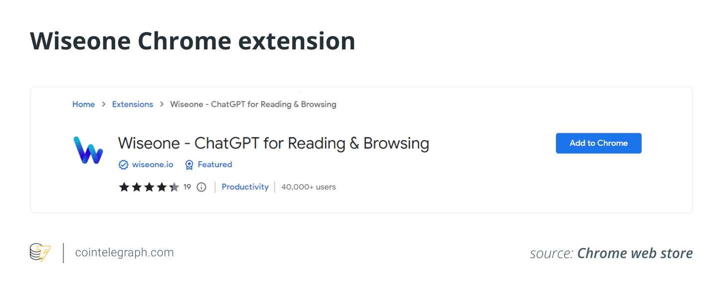 https://images.cointelegraph.com/cdn-cgi/image/format=auto,onerror=redirect,quality=90,width=840/https://s3.cointelegraph.com/uploads/2023-05/96e8c650-b03b-49f5-ab9e-c9d3f4e47d71.jpgChatGPT browser extensions offer features such as text generation, writing assistance and research support, enabling users to boost their productivity and streamline their workflow.