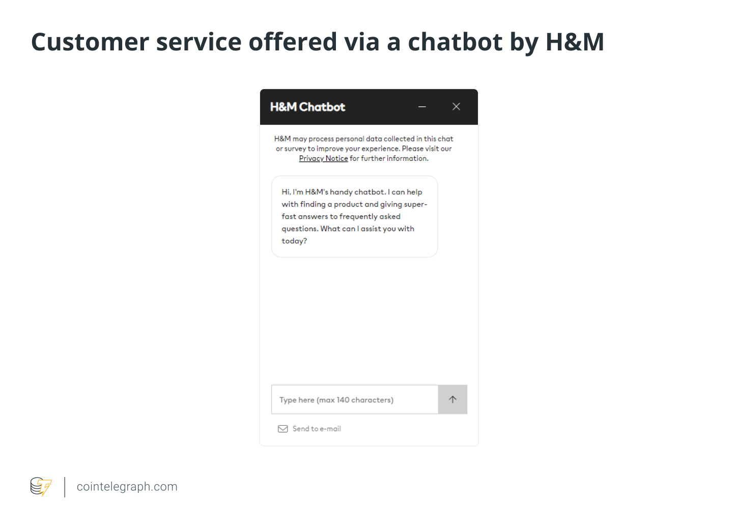 https://images.cointelegraph.com/cdn-cgi/image/format=auto,onerror=redirect,quality=90,width=840/https://s3.cointelegraph.com/uploads/2023-05/fd3c1a1b-717e-4b1e-aa39-fe519176ef07.jpgAI is transforming e-commerce customer service through chatbots, personalized recommendations, voice assistants, fraud detection and image recognition.