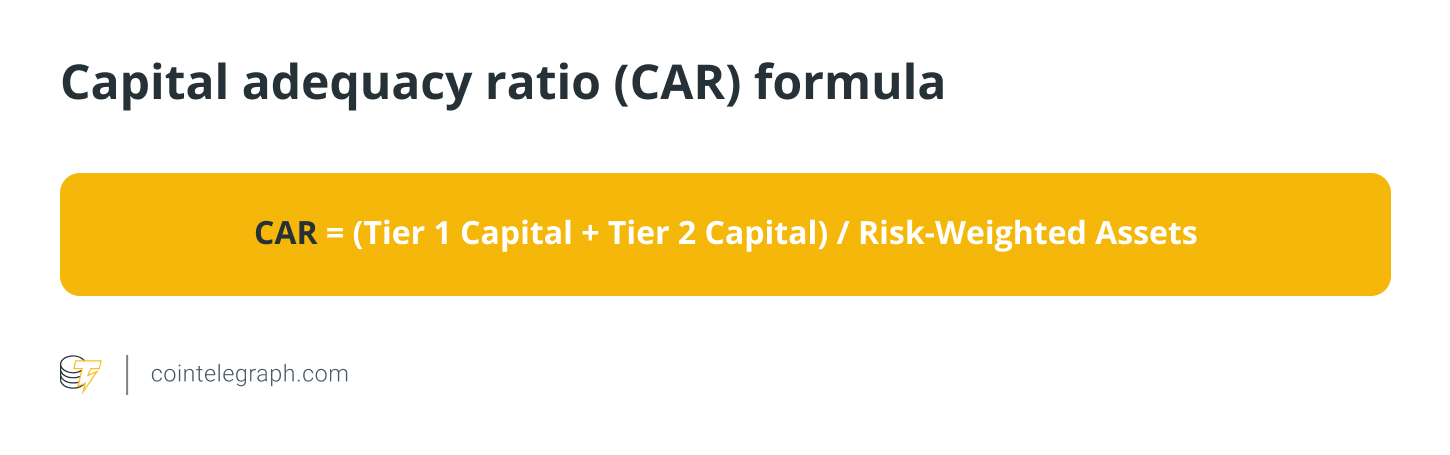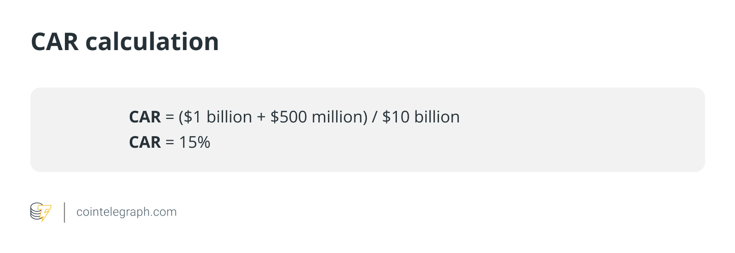 For example, if a bank has Tier 1 capital of $1 billion, Tier 2 capital of $500 million and risk-weighted assets of $10 billion, the CAR would be: