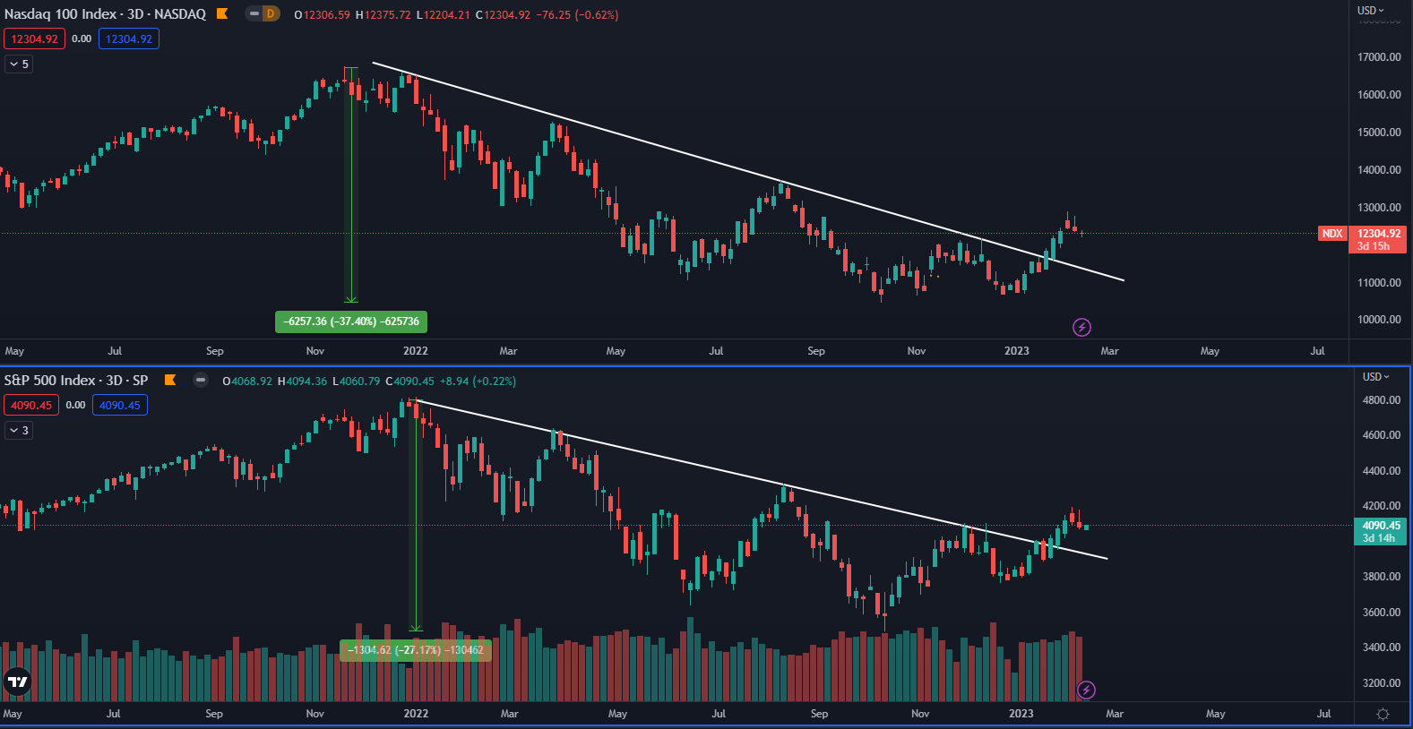 Akciový trh dosiahol dno 12. októbra 2022 a odvtedy sa mu nepodarilo sformovať klesajúce minimum. To ale neznamená, že akcie začnú dlhodobo rásť. Až do konca novembra bola udržaná vzostupná trajektória, no v zápätí sa december niesol v duchu korekcie. Až koncom januára sa cenám podarilo prekonať rezistenciu tvorenú maximami z predošlého roka.