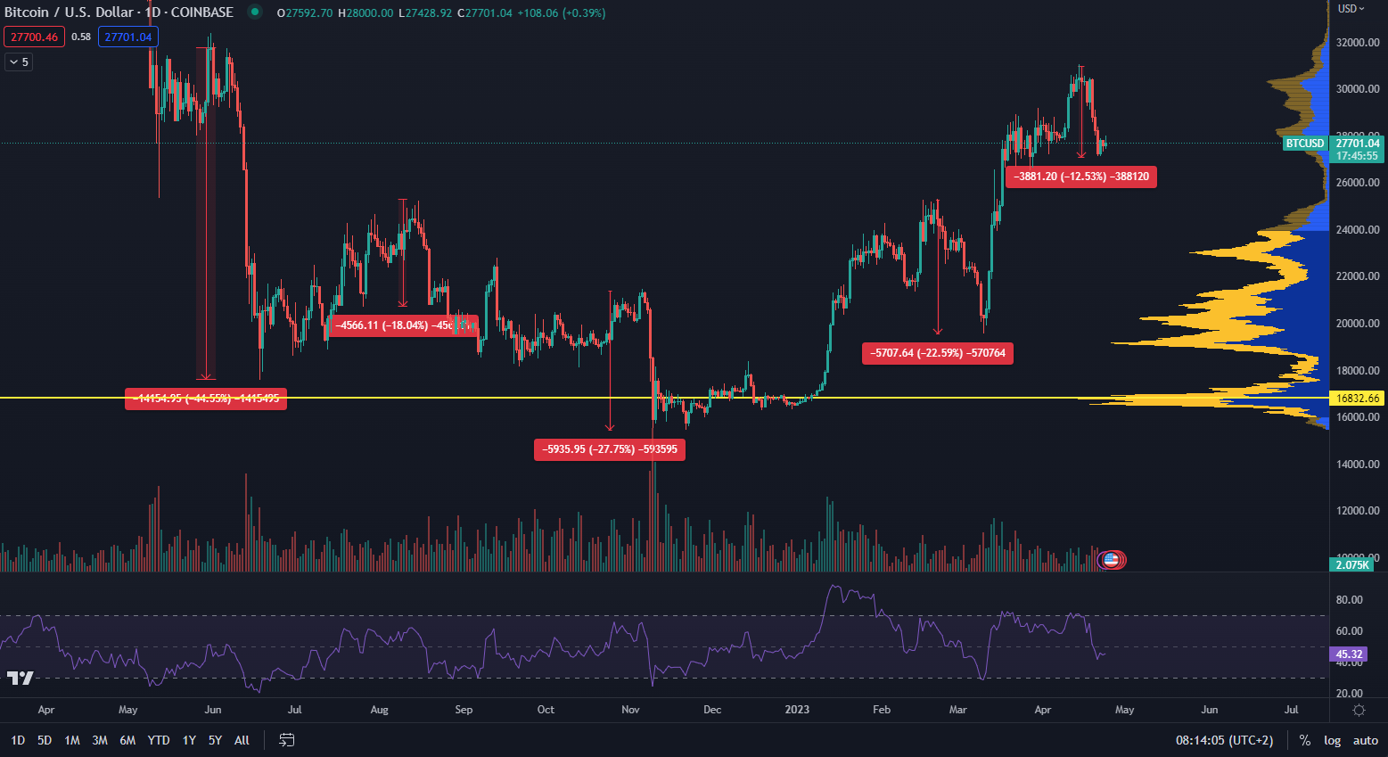 V priebehu posledného týždňa bitcoin klesol o približne 10 % a naposledy sme podobný scenár mohli vidieť na prelome februára a marca. Mnoho obchodníkov si myslí, že dosahovanie ziskov je možné predovšetkým iba počas cenového nárastu, no nie je to pravda. Podľa správy Beincrypto, existuje hneď niekoľko spôsobov, ako profitovať aj v časoch korekcie.