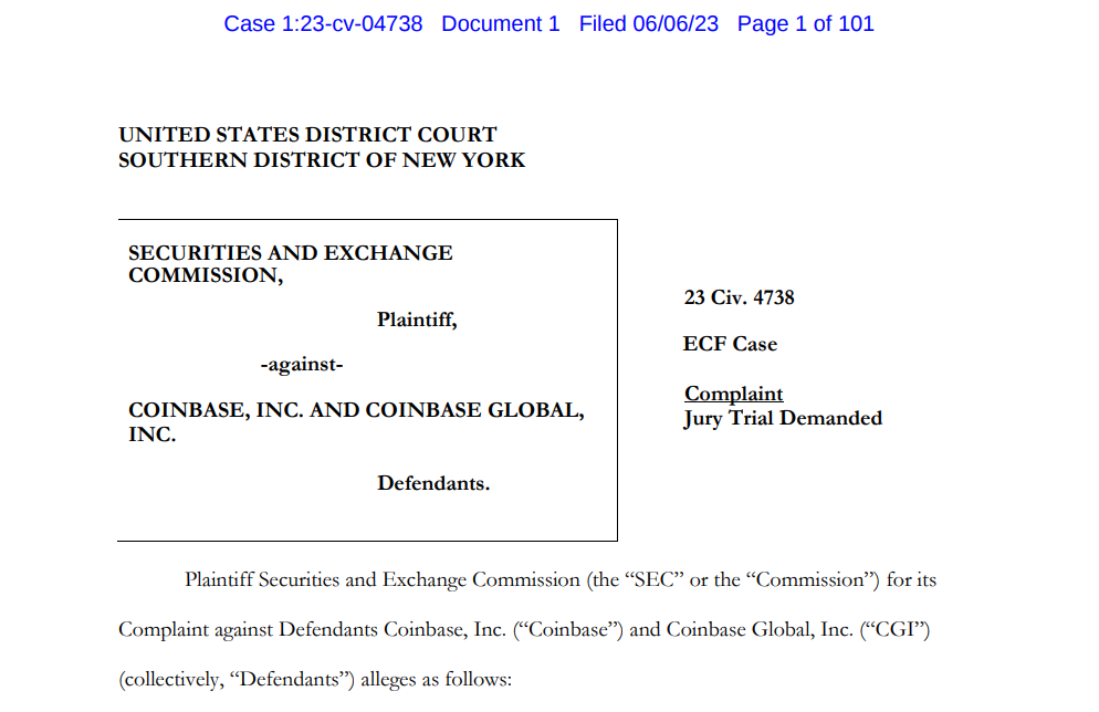 Kryptomenové burzy zažívajú opäť ťažké časy, keďže americká Komisia pre cenné papiere a burzu (SEC) vzniesla žalobu najprv proti Binance a deň na to 6. júna 2023 aj na Coinbase. Podľa správy Finbold regulátor cenných papierov tvrdí, že Coinbase porušil americké zákony o cenných papieroch.