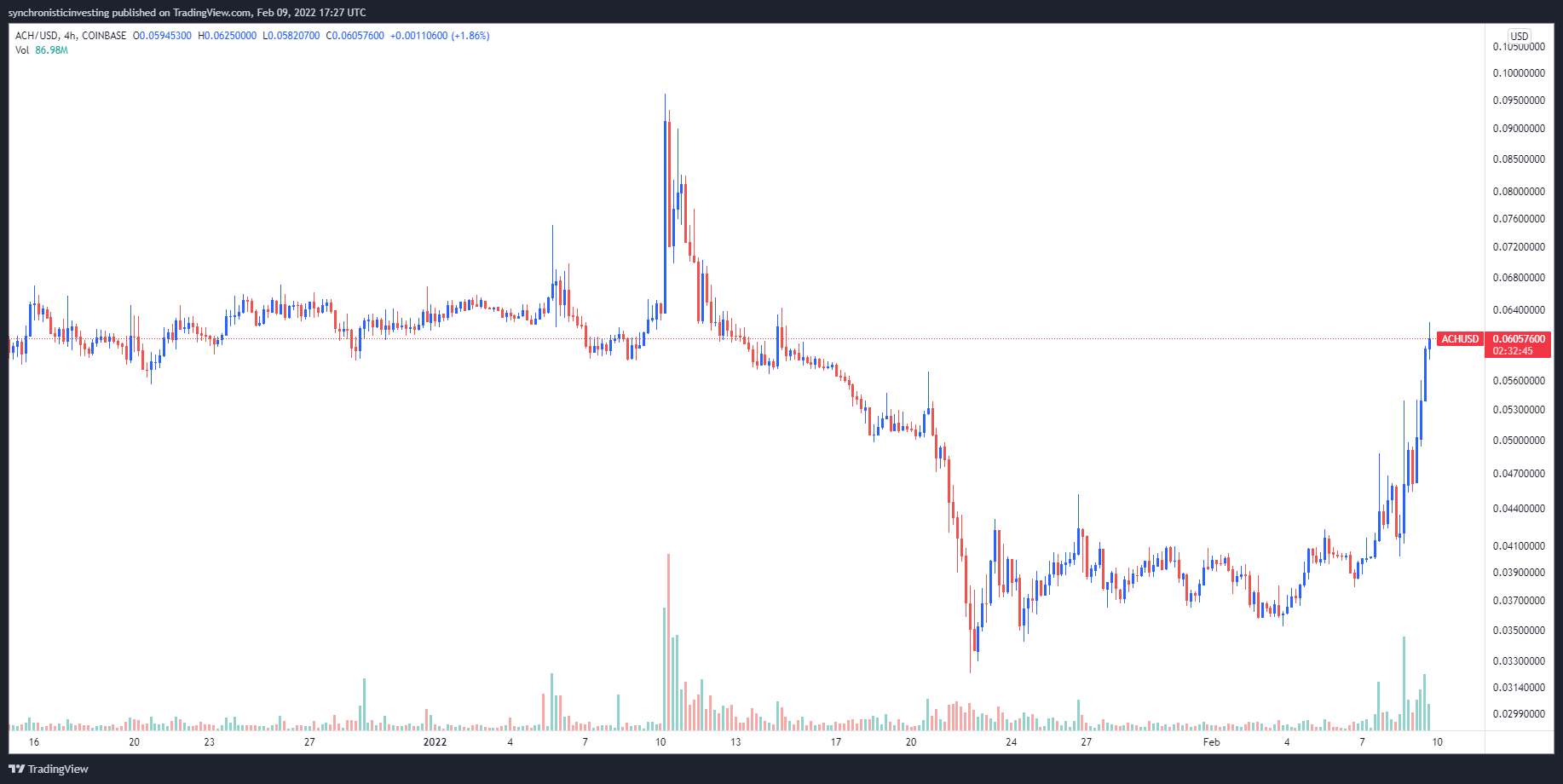 A second factor helping boost the momentum in the price of ACH has been its listing on multiple exchanges, including Binance on Jan. 10.