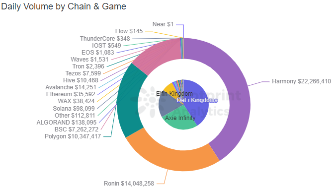 As shown in the graphic above, the Harmony network has been processing a daily average of $22.26 million worth of transactions as compared to the $14 million being conducted on the Ronin sidechain, which is home to Axie Infinity.