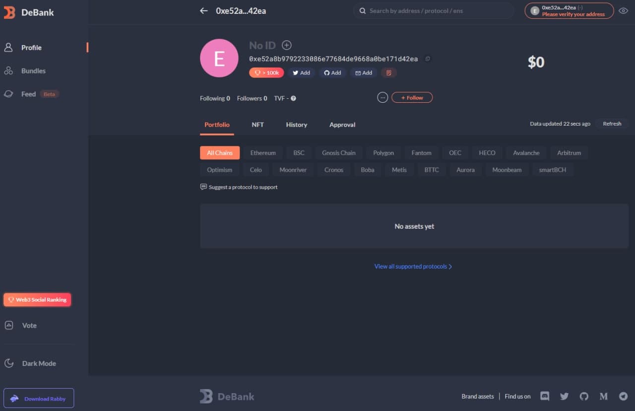 2. Search to verifyhttps://t.co/XpcpO0VdCi https://t.co/7O6xLAwrIn pic.twitter.com/RXlMPWy28l— DeBank (@DeBankDeFi) February 28, 2021