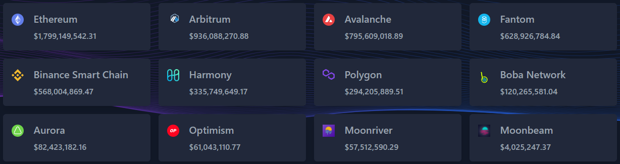 One of the main reasons for the high TVL on Multichain is the large number of blockchain networks supported by the protocol. Currently, 30 different chainscan be accessed on the network.