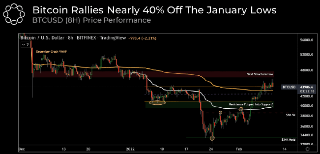 Bitcoin now finds itself trading in an increasingly tighter rage at these current levels in large part due to “the sharp $12,000 move off the lows” of Feb. 4, according to a recent report from Delphi Digital, which noted that BTC is now “heading into resistance on multiple timeframes.”