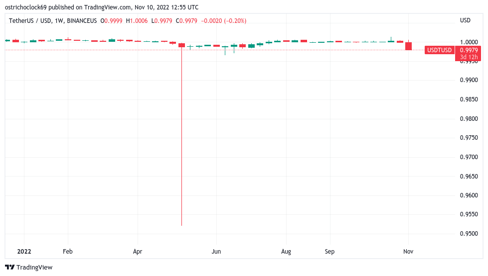 During the Tether LUNA aftermath, USDT briefly wicked lower than $0.96, soon recovering its USD peg.