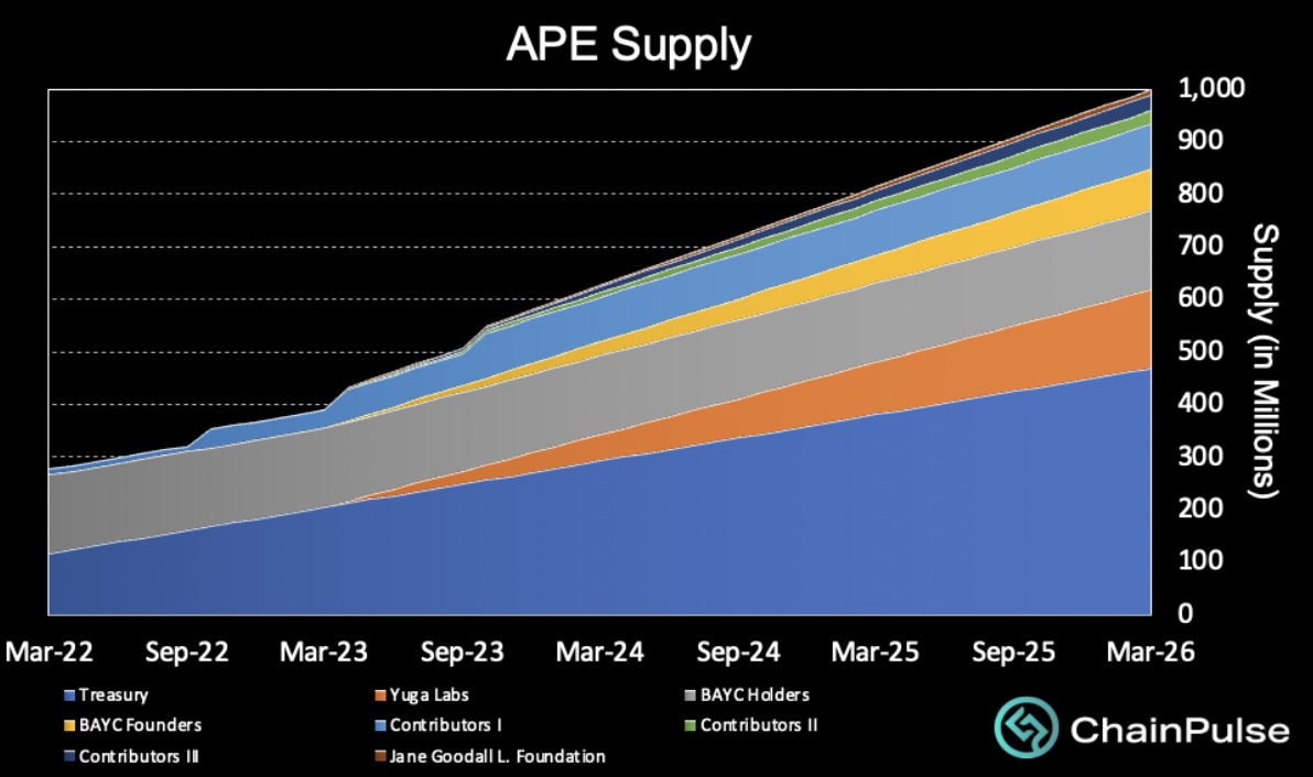 He said that 9.4 million APE would likely enter the market each month over the next year as Yuga Labs, the four BAYC Founders, and will be able to unlock their allocated tokens.
