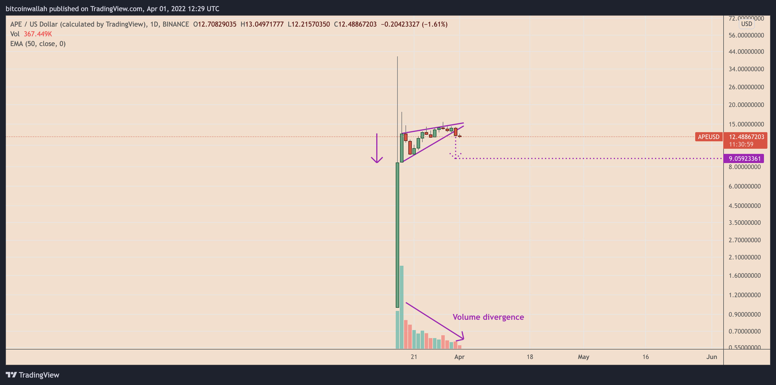 https://images.cointelegraph.com/images/840_aHR0cHM6Ly9zMy5jb2ludGVsZWdyYXBoLmNvbS91cGxvYWRzLzIwMjItMDQvODQ1MmE1NmQtNGM1Mi00ZjUwLWJkMmItMzY1MTRhZmE2NDkzLmpwZw==.jpgA euphoric price rally by ApeCoin (APE) seen in mid-March appears to be exhausted already thanks to the coin’s 70% drop in valuation in the past two weeks — and it may fall further in April.