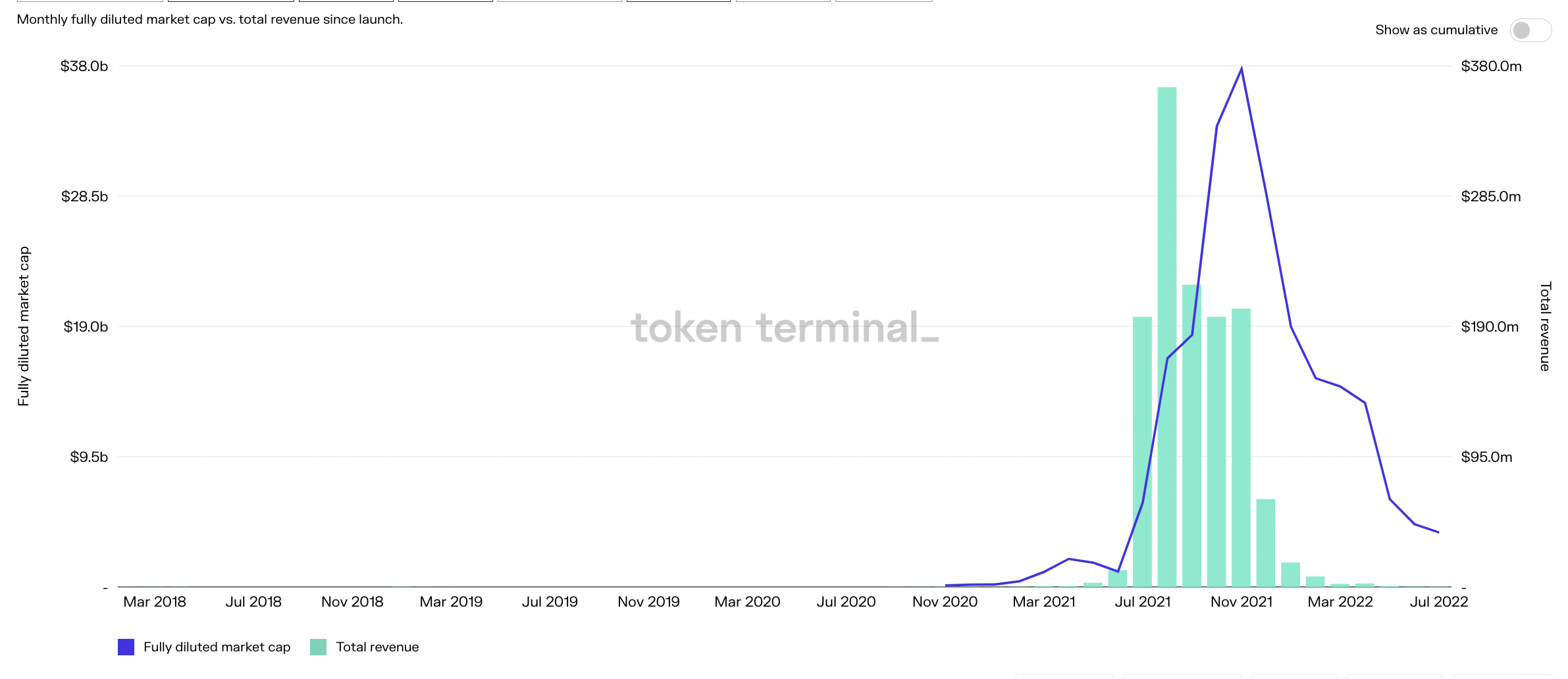 That is visible in Axie’s monthly revenue performance, which has dropped over 98% from its August 2021 peak of $364.4 million, according to data tracked by Token Terminal.