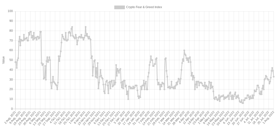 The Index measures 33/100 as of Aug. 1, still high compared to recent months but already considerably below the highs of 42/100 seen just days ago.
