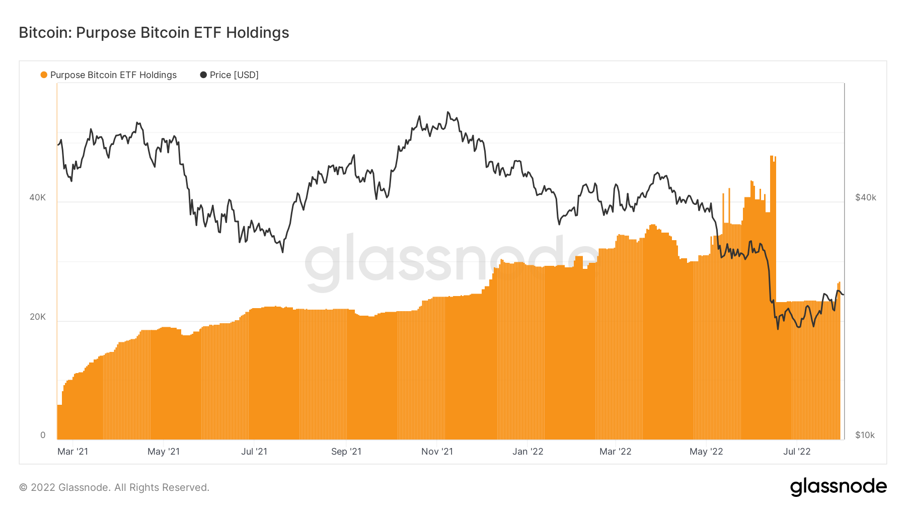 After its holdings suddenly declined by 50% in June, the product is finally adding BTC again, suggesting that demand is no longer falling.