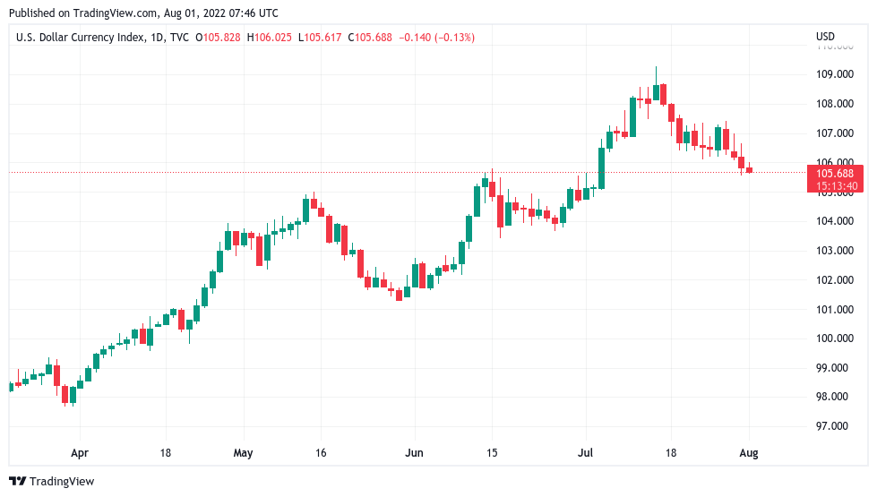 For Game of Trades, the index was more significant than the numbers. After its parabolic uptrend, a clear change of direction was now visible on the DXY daily chart.