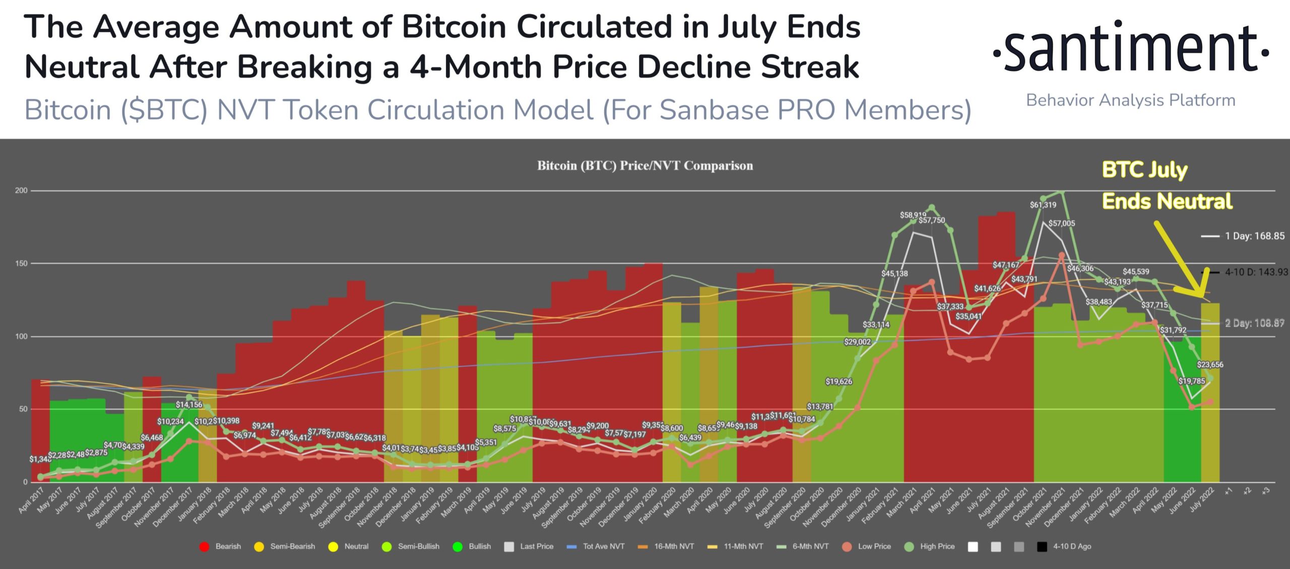 “With a neutral signal now as prices have risen and token circulation has declined slightly, August can move either direction,” Santiment summarized in a Twitter update about the latest numbers.
