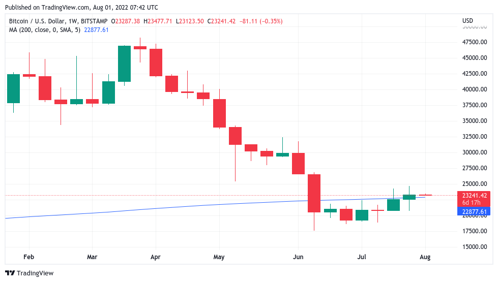 While those gains at one point passed 20%, July’s tally nonetheless remains Bitcoin’s best since October 2021 — before the latest all-time highs of $69,000 hit.