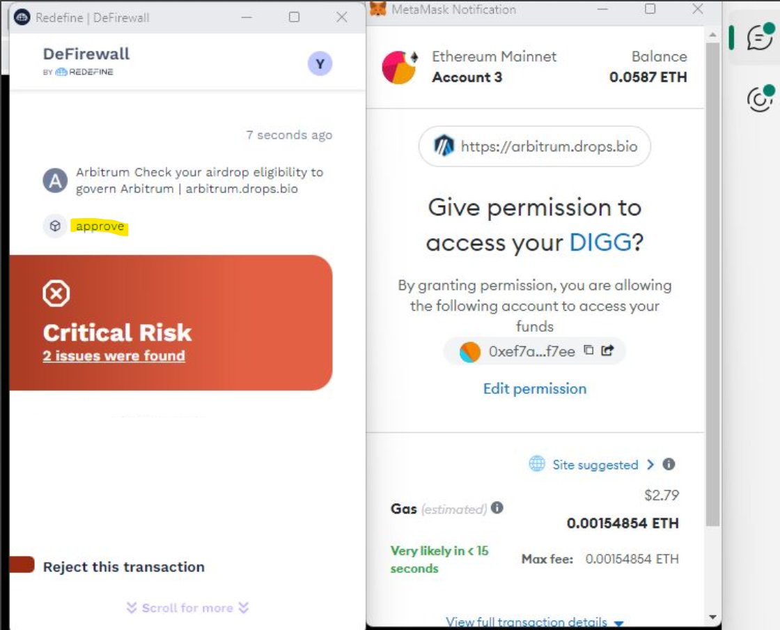 Blockchain security company Redefine in a March 19 post said it found a website impersonating an official Arbitrum airdrop website. The screenshots show a user is asked by the website to allow access to their funds, which would presumably result in the scammers draining th wallet.