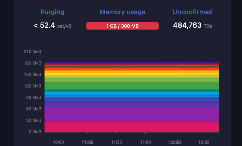 At the time, the Bitcoin mempool had a backlog of around 400,000 transactions waiting to be processed. That’s now swelled to nearly 485,000, according to data from mempool.space.