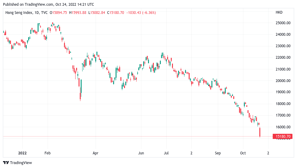 It was nonetheless macro markets offering clearer signs of volatility to come on the day, specifically in Asia, where the Hong Kong Hang Seng saw its biggest daily drop since the Lehman Brothers implosion in 2008.