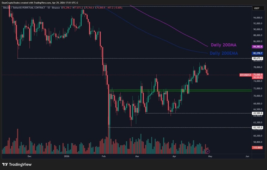 Daan Crypto Trades said the $80,000 level remains the “main level for the bulls in the short/mid term.”