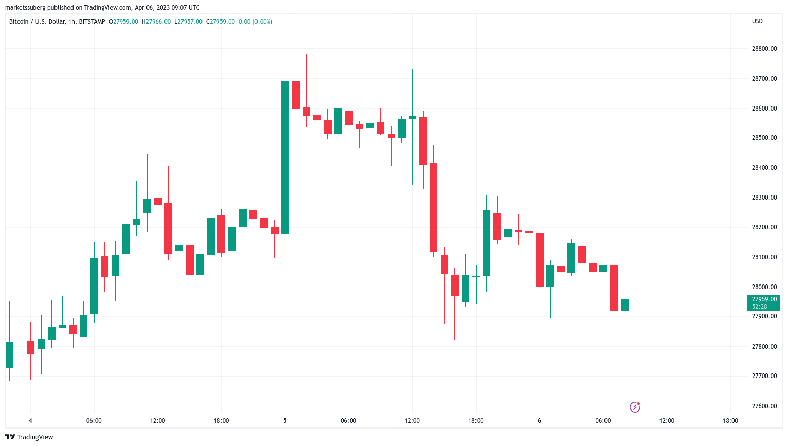 Bitcoin (BTC) saw another failure to exit a tight trading range into April 6 as $28,000 again hung in the balance.