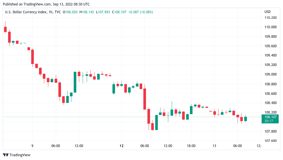 The U.S. dollar index (DXY), a key driver of risk asset downside, steadied its fall from recent days, attempting to preserve 108 as support.
