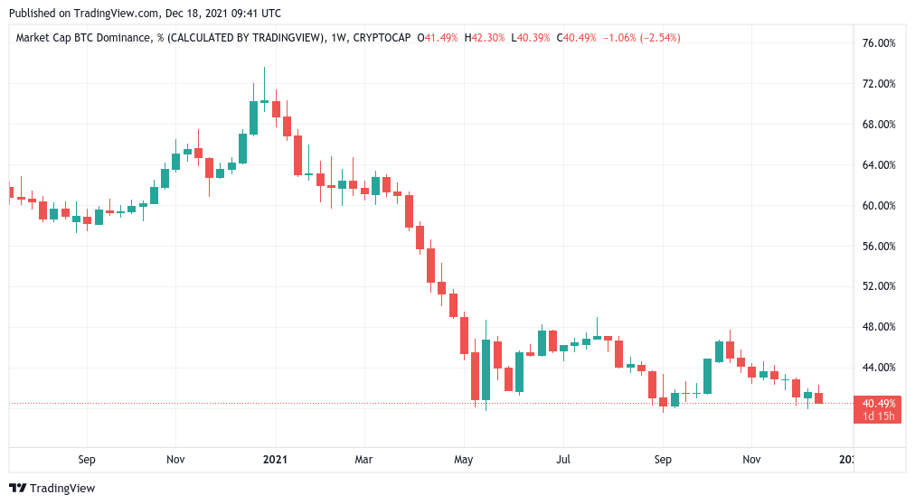 Even here, however, the tide is turning as data shows Bitcoin dominance waning.