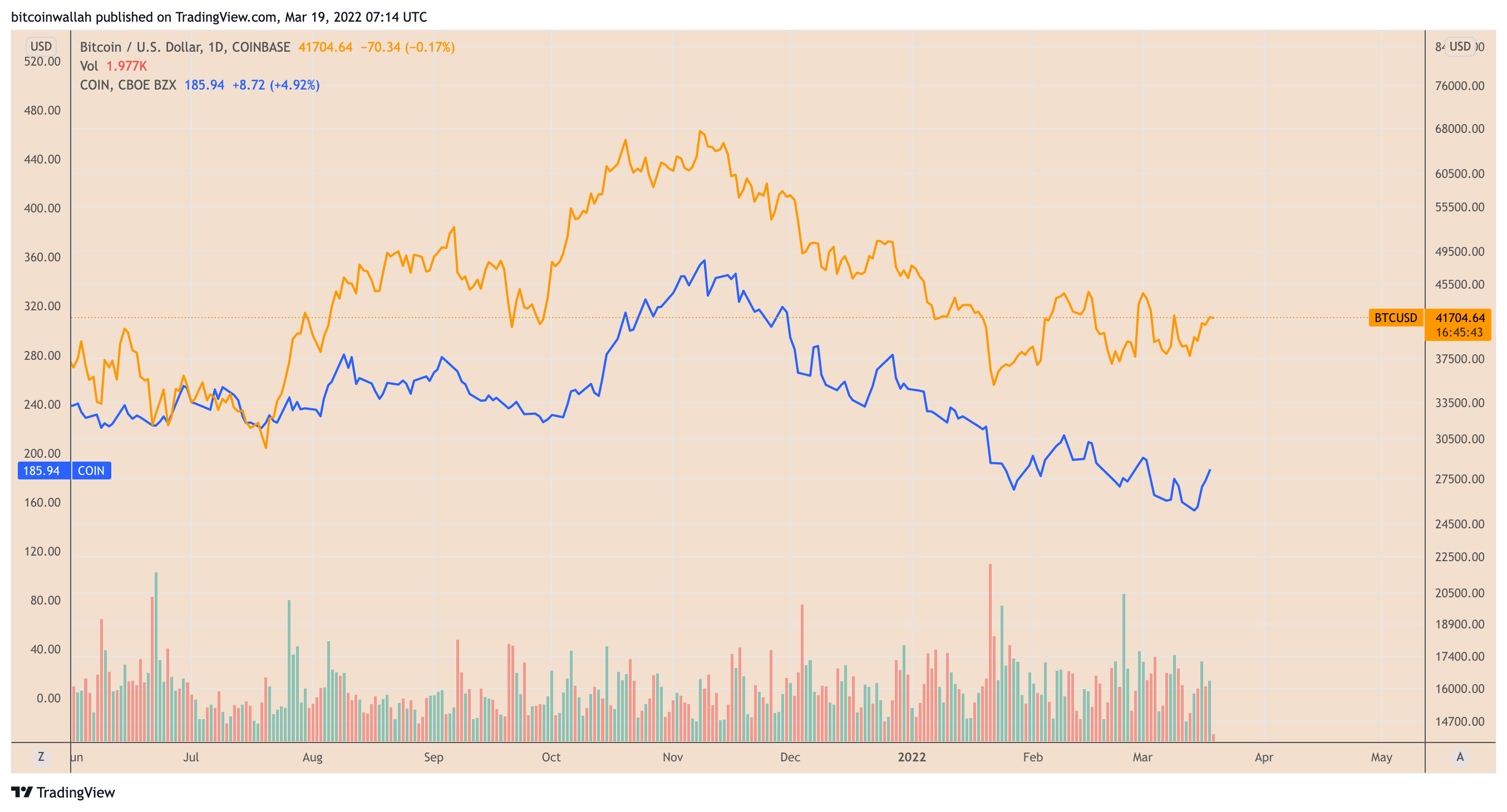 https://images.cointelegraph.com/images/840_aHR0cHM6Ly9zMy5jb2ludGVsZWdyYXBoLmNvbS91cGxvYWRzLzIwMjItMDMvYWFhNTM1NWUtNDEyNi00MTQxLTgwZTctNzQ4NTdlZTE0ZjNiLmpwZWc=.jpegBuying a Coinbase stock (COIN) to gain indirect exposure in the Bitcoin (BTC) market has been a bad strategy so far compared to simply holding BTC.