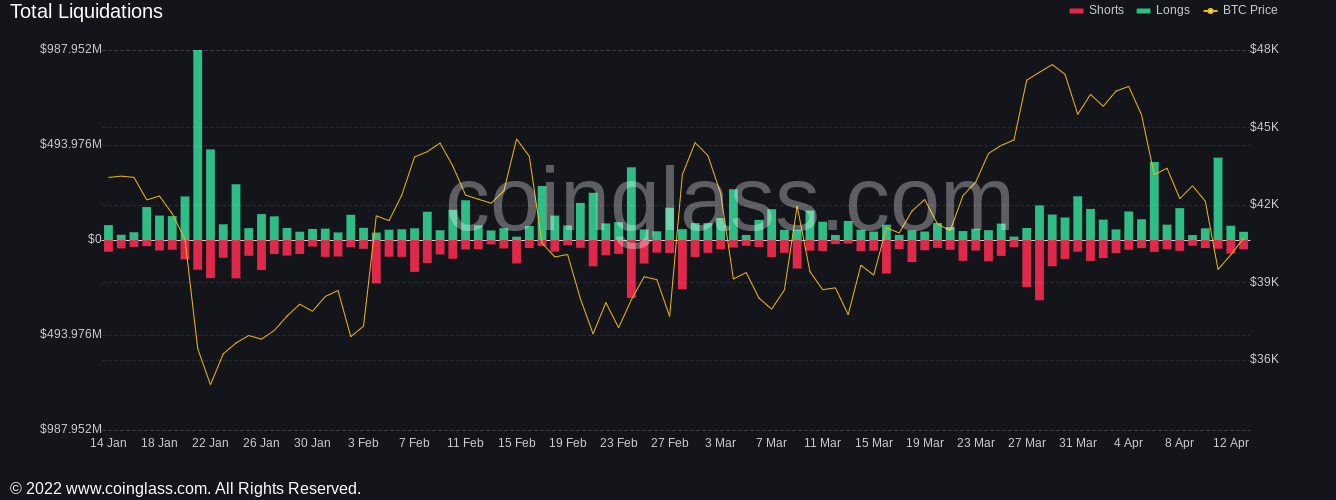 The dip below $40,000 had conversely cost market participants dearly, with liquidations passing $500 million fueled by longs.
