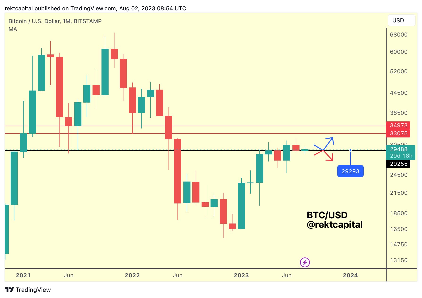 Fellow trader and analyst Rekt Capital, meanwhile, stuck by an existing theory that $29,250 was the line in the sand for bulls to hold onto.