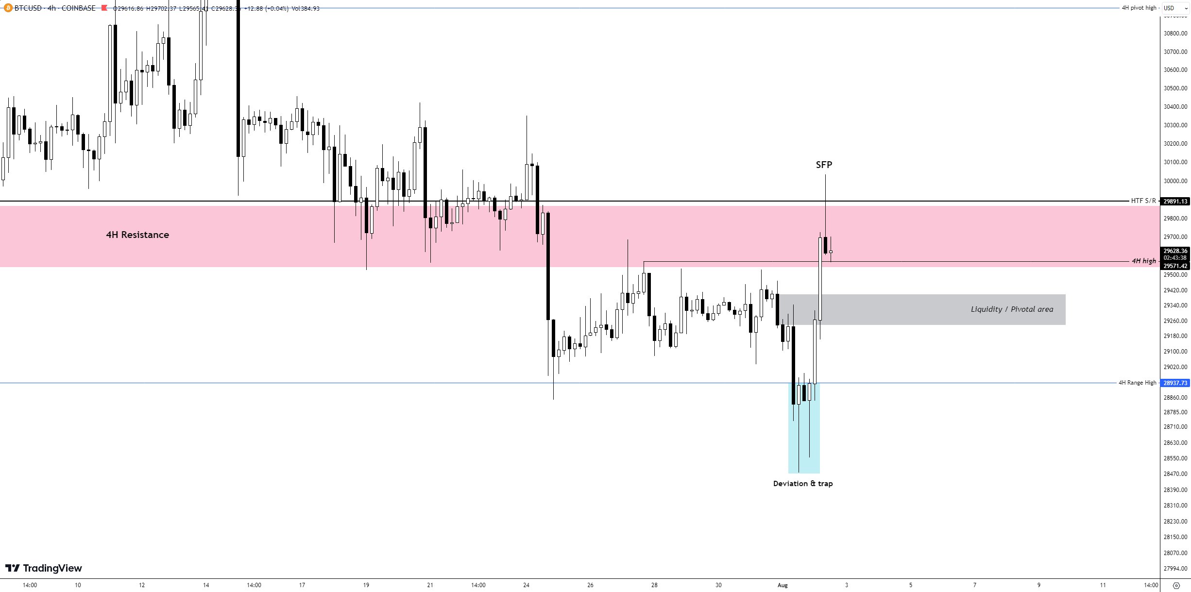Local highs of $30,025 were short-lived, with bulls unable to maintain momentum or hold the market above levels previously identified as pivot points.